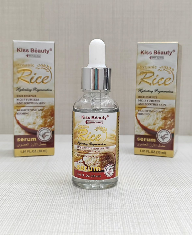 سرم صورت برنج این تصویر یک سرم صورت "Kiss Beauty Organic Rice Hydrating Regeneration Serum" را نشان میدهد. نام محصول: سرم احیاکننده و آبرسان برنج ارگانیک کیس بیوتی (Kiss Beauty Organic Rice Hydrating Regeneration Serum). کاربرد: این سرم برای مرطوب کردن، تسکین، روشن کردن و سفت کردن پوست طراحی شده است. ترکیبات کلیدی: حاوی عصاره برنج و اسید هیالورونیک است که به تغذیه و آبرسانی پوست کمک میکند. حجم: این محصول در حجم ۳۰ میلیلیتر (۱.۰۱ اونس مایع) عرضه میشود. مزایا: به بهبود خشکی و زبری پوست ناشی از کمبود رطوبت کمک کرده و الاستیسیته پوست را بازسازی میکند. 10150
