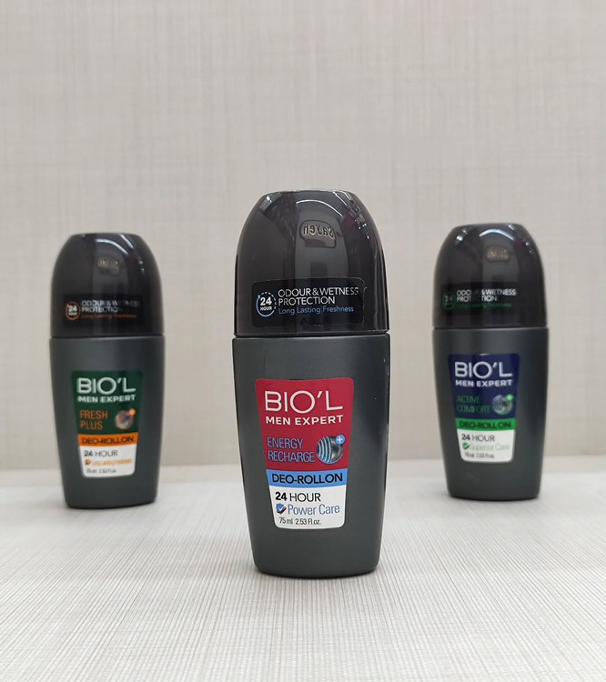 مام دئورول این تصویر یک رول ضد تعریق (دئورولآن) از برند BIO'L را نشان میدهد. نام محصول: BIO'L MEN EXPERT ACTIVE COMFORT DEOROLL ON. ویژگیها: محافظت 24 ساعته در برابر بو و رطوبت، با ماندگاری طولانی مدت. حجم: لیتر (2.53 اونس مایع). نوع محصول: دئورولآن، مناسب برای استفاده روزانه. نکات خرید: این محصول برای آقایان طراحی شده و برای کنترل بوی بدن و تعریق مناسب است