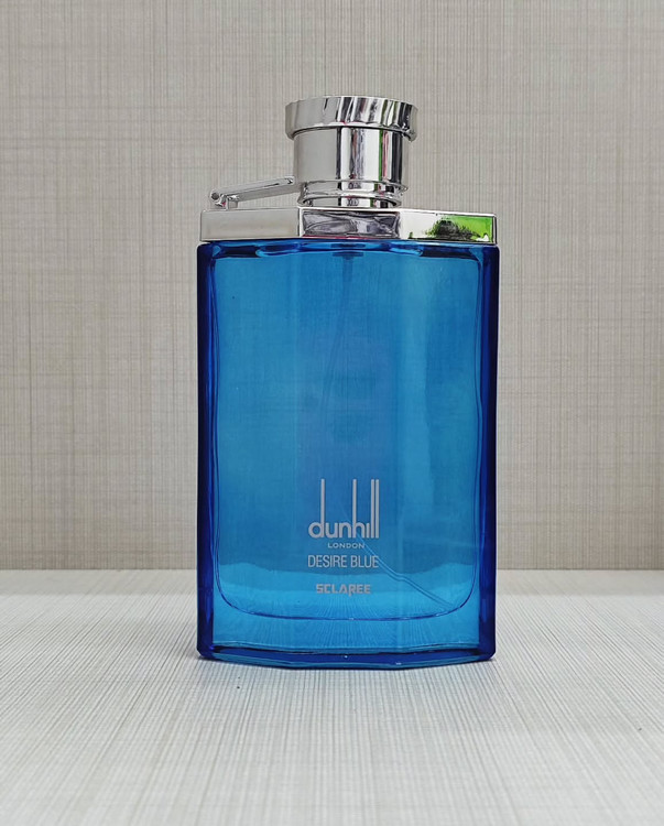 ادکلن دانهیل موجود در تصویر، دانهیل دیزایر بلو (Dunhill Desire Blue) است. این عطر مردانه در سال 2002 به بازار عرضه شد و توسط فیلیپ رومانو ساخته شده است. "دانهیل دیزایر بلو" عطری با رایحه معطر سبز است. نتهای بالایی آن شامل لیچی، پرتقال ماندارین، نیلوفر آبی و ترنج است. نتهای میانی شامل نتهای دریایی، پرتقال و چوب بلسان بنفش برزیلی است. نتهای پایه نیز شامل دانه تونکا، مشک، کهربا و بنزوئین است.