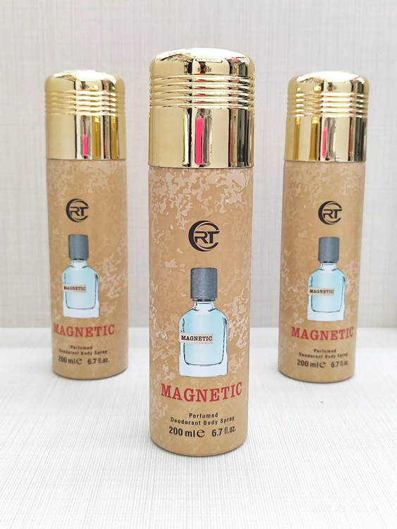 اسپری بدن معطر مردانه Magnetic از برند RT است. این اسپری بدن در حجم لیتر عرضه میشود. این محصول به عنوان یک دئودورانت بدن معطر (Perfumed Deodorant Body Spray) معرفی شده است. اطلاعات بیشتر در مورد رایحه یا ویژگیهای خاص این محصول در دسترس نیست، اما به طور کلی اسپریهای بدن برای خوشبو کردن و کنترل بوی بدن مورد استفاده قرار میگیرند. این محصول در فروشگاه لوازم آرایشی بهداشتی سایه موجود میباشد